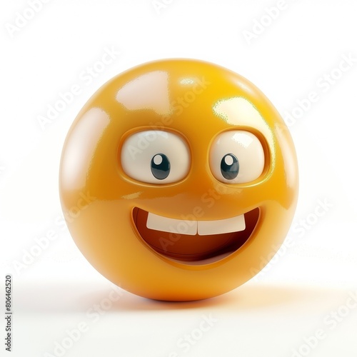 3D Emoji with Happy Expression, Yellow Cartoon Smiling, Joyful Digital Art on White Background