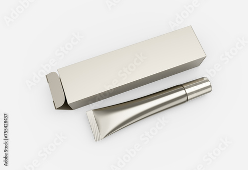 3d Empty Silver Shiny Product Tube With Product Cardboard For Cosmetic Cream Mock Up 3d Illustration