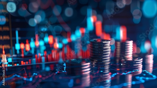 3d finance graph and investment bar on shiny coin background showcasing market growth success technology and currency reports