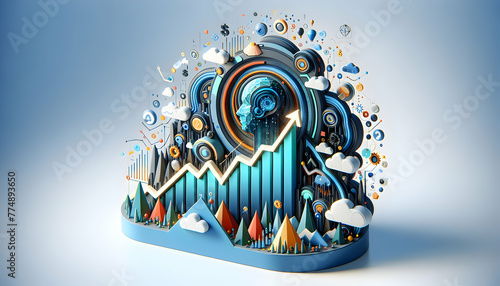3d flat icon as AI Analytics Ascent A banner showcasing the ascent of AI analytics in finance with a rising chart and abstract imagery. in financial growth and innovation abstract theme with isolated