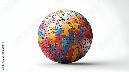 3D Floating Puzzle Pieces Assembling into a Globe Icon on White Background - Symbolizing Global Community & Business Collaboration in Vector Illustration