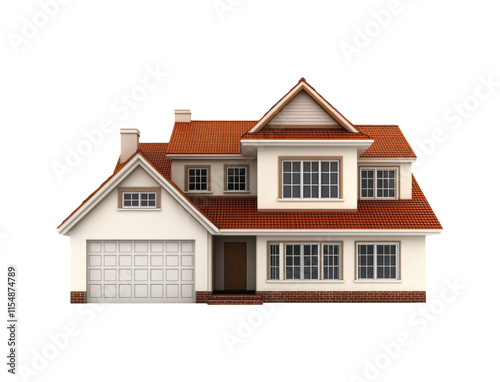 3D Front View of Empty House for Sale on Transparent Background