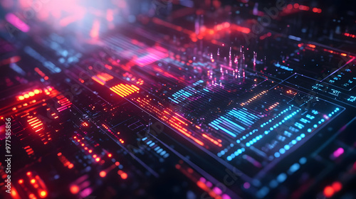 3D Futuristic Digital Calendar Concept with Holographic Elements and Glowing Lines for 2025 - Innovative Modern Design