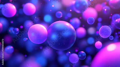 3D geometric shapes practice. vibrant cluster of spheres in various sizes, showcasing shades of purple and blue, creating dynamic and colorful abstract background