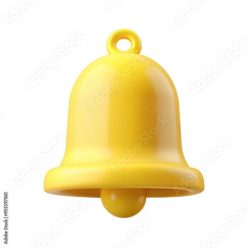 3D glossy yellow bell icon illustration with a smooth surface and minimalist design. Perfect for use in notifications, alerts, and digital interfaces. Isolated on transparent background, png.