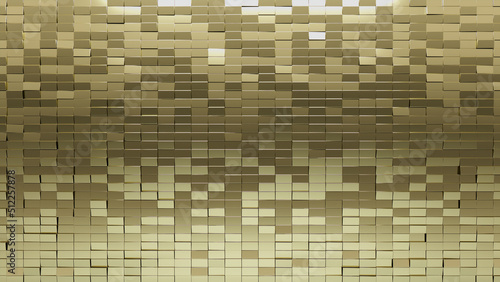3D, Gold Wall background with tiles. Polished, tile Wallpaper with Luxurious, Rectangular blocks. 3D Render