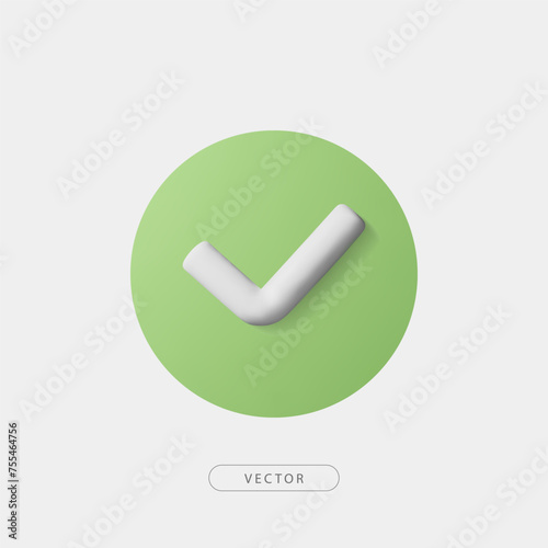 3d green circle checkmark icon. Valid or validated, verified label or certified symbol. Isolated on white background. 3d Approval or success icon. Vector illustration