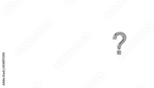 3d high quality render, minimal white background, silver chrome question mark, photorealistic, highly detailed, cinematic lighting, studio shot