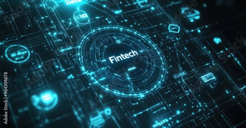 3D hologram of fintech technology concept with digital elements and futuristic interface design