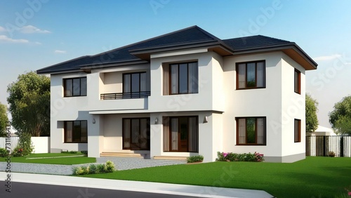 3d house model rendering on white background, Clean and precise 3D illustration modern cozy house. Concept for real estate or property.