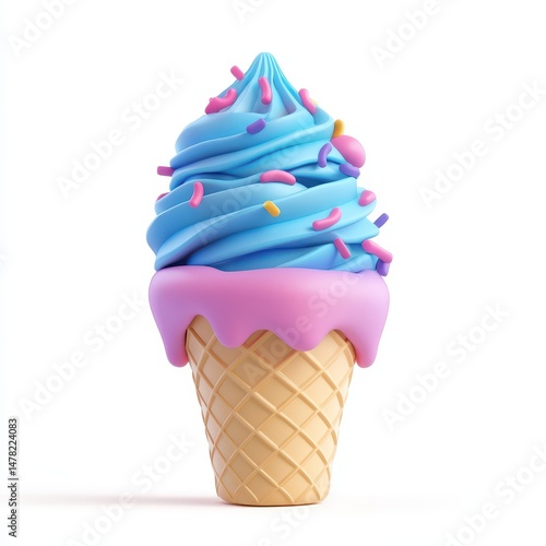 3D Ice Cream Cone Icon, creamy texture, isolated on white background