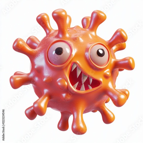 3D icon cartoon of a dangerous virus particle, isolated on a white background