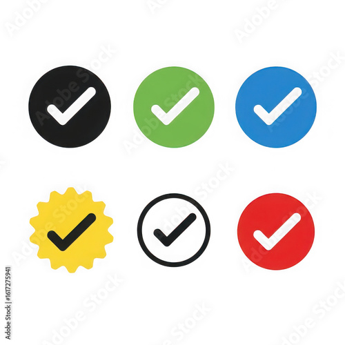 3d icon of a collection of colorful check mark icons in various shapes and styles representing approval isolated on transparent background