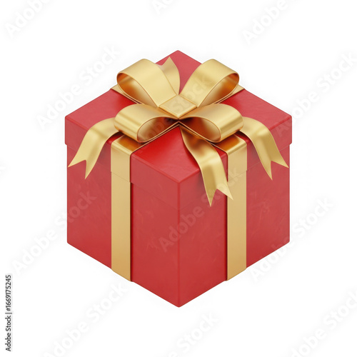 3d icon of a festive red gift box with a golden ribbon and bow, isolated on transparent background