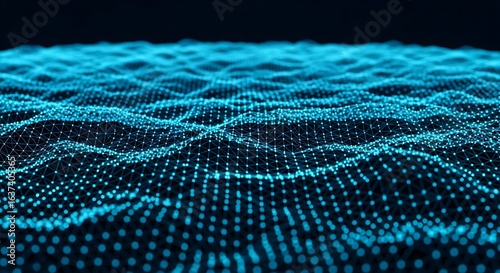 3d icon of abstract blue digital wave pattern composed of glowing dots and lines, creating a futuristic and technological surface