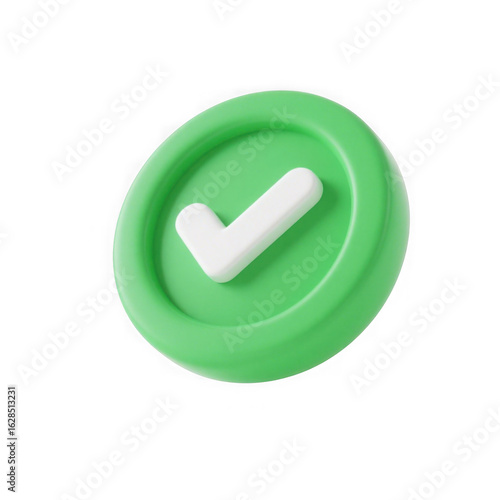 3d icon of green checkmark isolated on transparent background, symbolizing correctness and approval