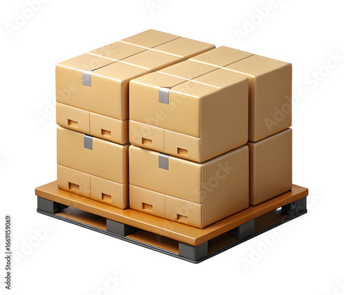 3d icon of stack of cardboard boxes on a wooden pallet isolated on transparent background