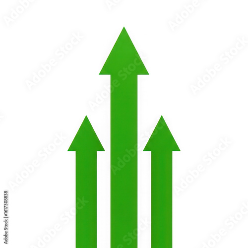 3d icon of three green arrows pointing upwards symbolize growth and forward direction on a transparent background