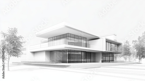 3D illustration abstract modern urban building out-line black and white drawing of imagination architecture building construction perspective design.