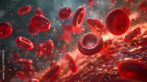 3D illustration electron microscope of red blood cells, Close-up under a microscope in the body. Scientific medical background