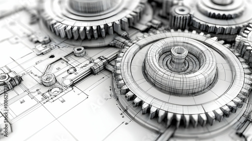 3D Illustration Gears Blueprint Mechanism Engineering Design