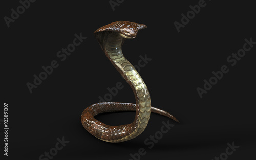 3d Illustration King Cobra The World's Longest Venomous Snake Isolated on Black Background, King Cobra Snake with Clipping Path.