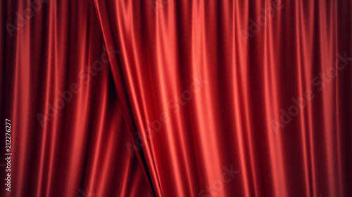 3D illustration luxury red silk velvet curtains decoration design, ideas. Red Stage Curtain for theater or opera scene backdrop. Mock-up for your design project