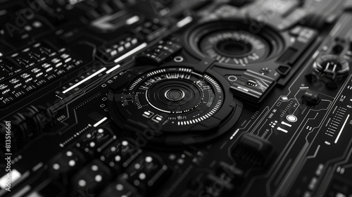 3D illustration of a digital interface in use, front view, interactive tech experience, robotic tone, Monochromatic Color Scheme