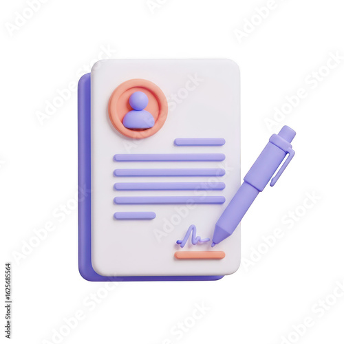 3d illustration of a document with a signature and a pen, symbolizing agreement or contract signing, isolated on transparent background