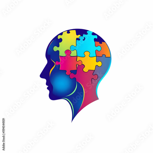3d illustration of A silhouette of a person with a puzzle in the head symbolizing thinking, ideas, and intelligence