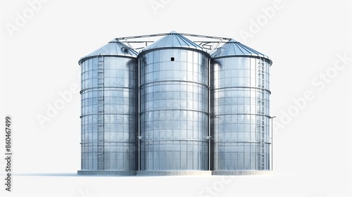3D illustration of a steel grain silo isolated on a white background