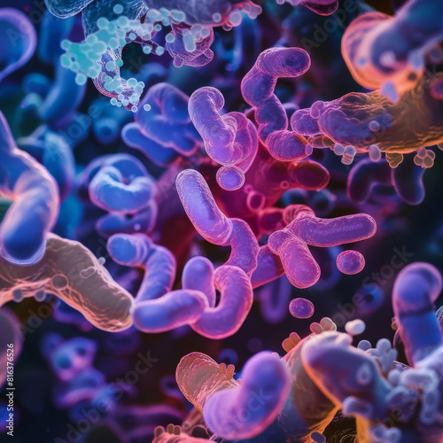 3D illustration of an abstract organic structure resembling bacteria or virus cells.