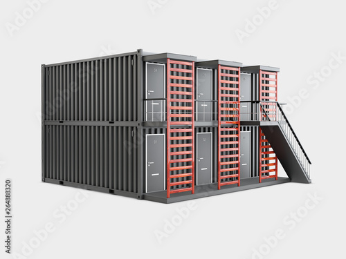 3d Illustration of Converted old shipping container into hotel, isolated gray