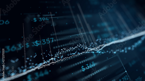 3D illustration of financial business chart with diagrams and stock numbers showing profits and losses