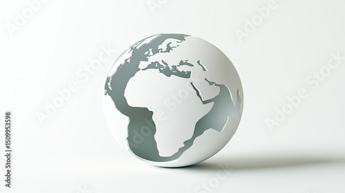 3D Illustration of Minimalist White Globe with Africa Continent Highlighted on Light Background for Global Representation and Environmental Concept