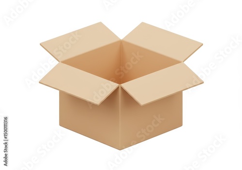 3D Illustration of Open cardboard box isolated on white background