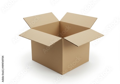 3D Illustration of Open cardboard box isolated on white background, casting a shadow