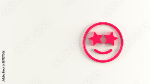 3d Illustration of outlined Smiling Face with starry eyes Emoji on light background.