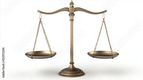 3D illustration of scales isolated on white background, symbolizing balance, justice, and fairness concepts.