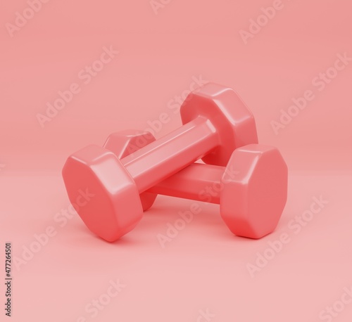 3D illustration, Pink Dumbbell on Pink background.