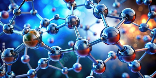 3D illustration render of interconnected molecules representing scientific research, with a vibrant color palette, glowing particles, and dynamic movement, ideal for a presentation backdrop
