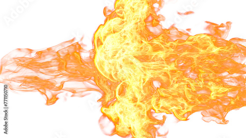 3d illustration. Tongues of flame collide from opposite sides on a white background.