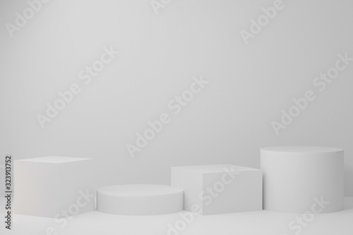 3d illustration with geometric step white cube & cylinder podium platform for cosmetic product presentation.Mock up design empty space. Abstract composition in pastel background modern style