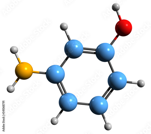 3D image of Aminophenol skeletal formula - molecular chemical structure of 3-Aminophenol isolated on white background