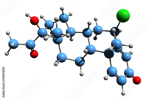 3D image of Cismadinone skeletal formula - molecular chemical structure of steroidal progestin isolated on white background