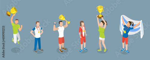3D Isometric Flat Vector Set of Success, Triumph and Victory, Sport Games Champions
