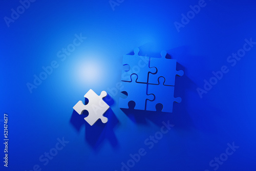 3D jigsaw puzzle pieces on a studio blue background. Problem-solving, business concept 3d render