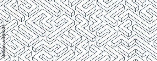 3D labyrinth seamless pattern, vector abstract background of isometric maze wallpaper, geometric blocks creative concept, cubic rebus.