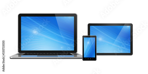 3D laptop, mobile phone and digital tablet pc - isolated on transparent background