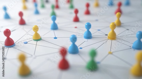 3D Leadership and Teamwork Concept with Colorful Game Pieces